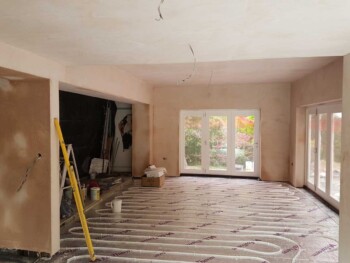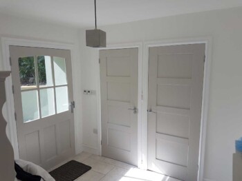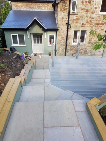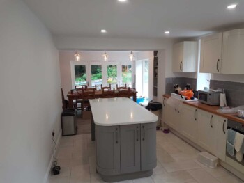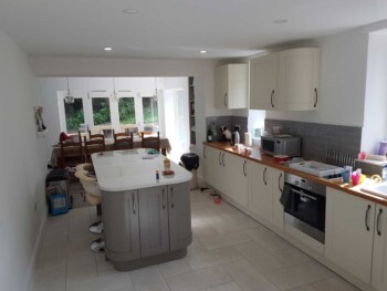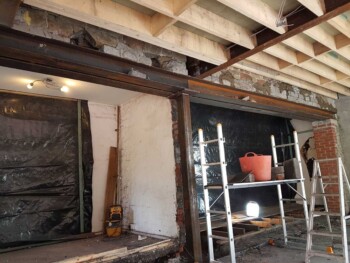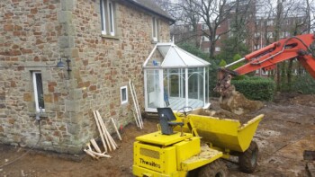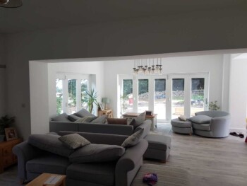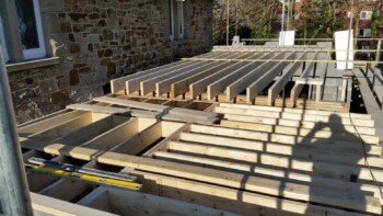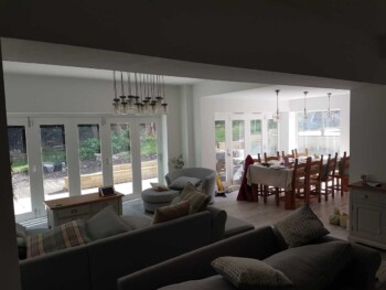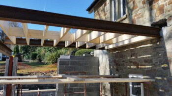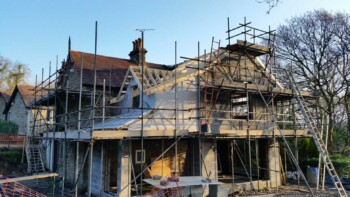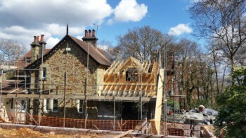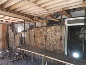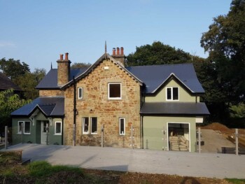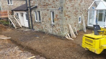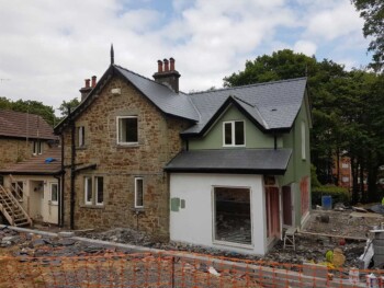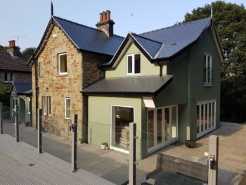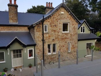 The new extension is constructed from part solid block and timber framework, all original stone walls demolished have been recycled back into the building.