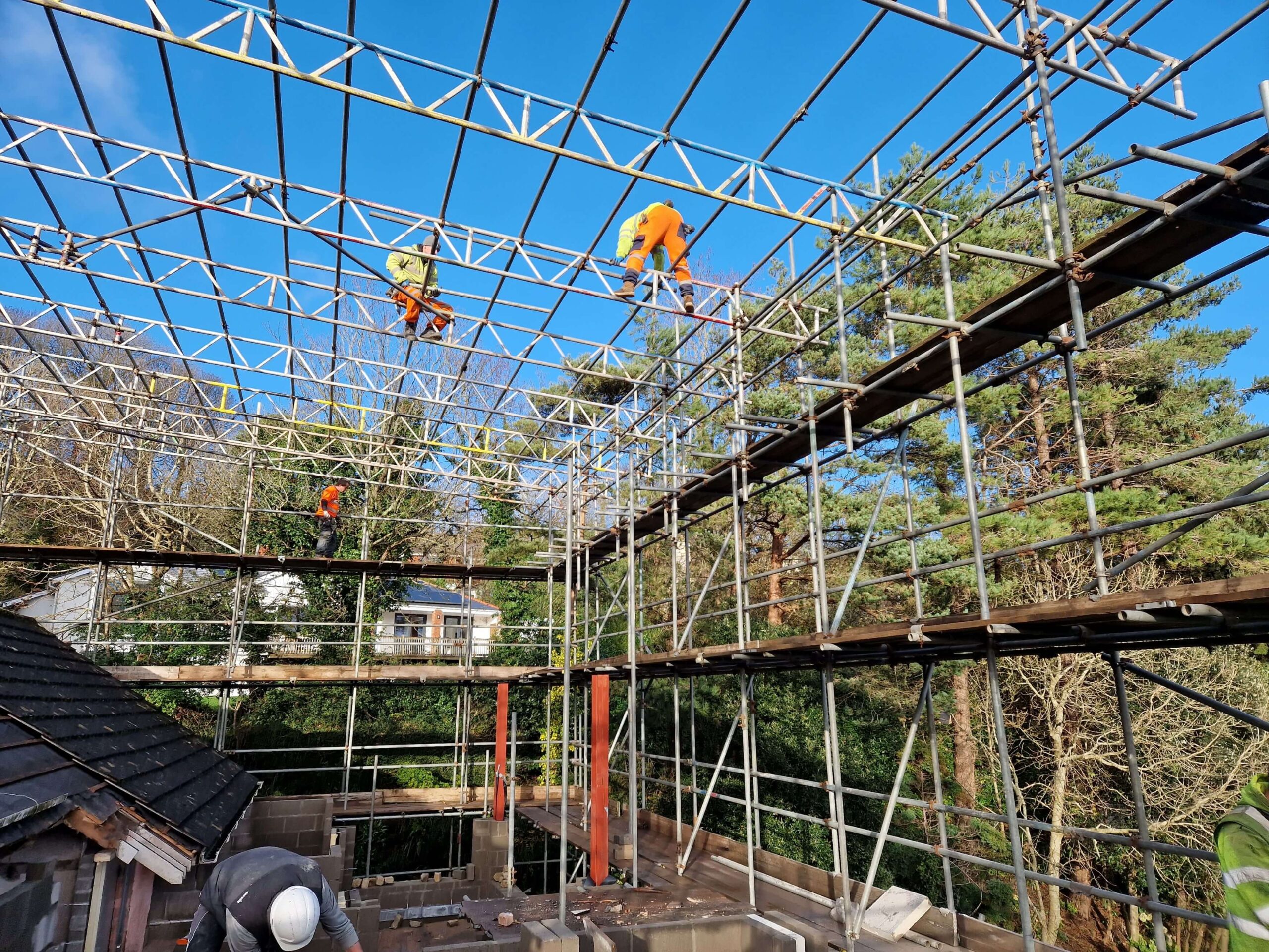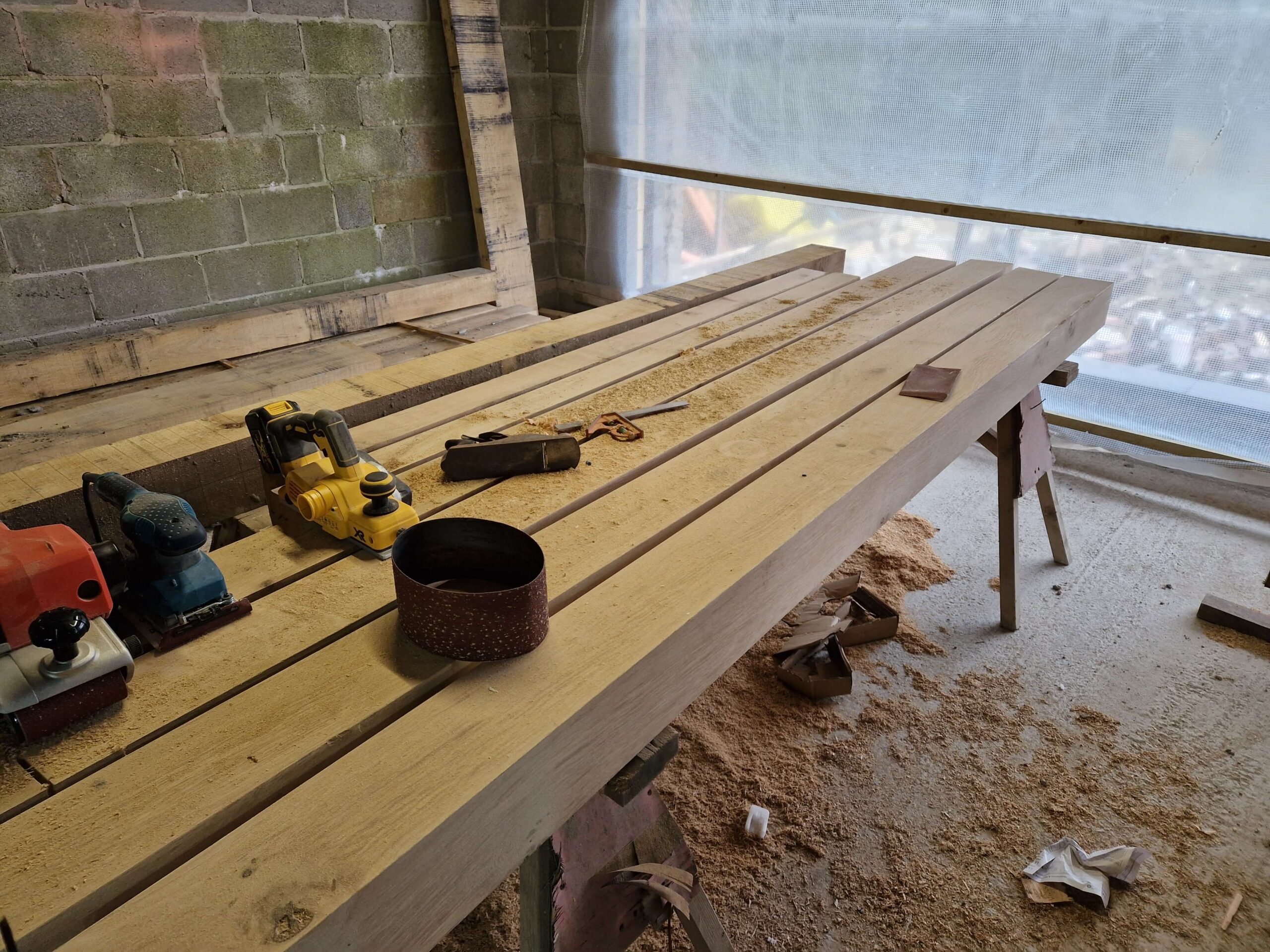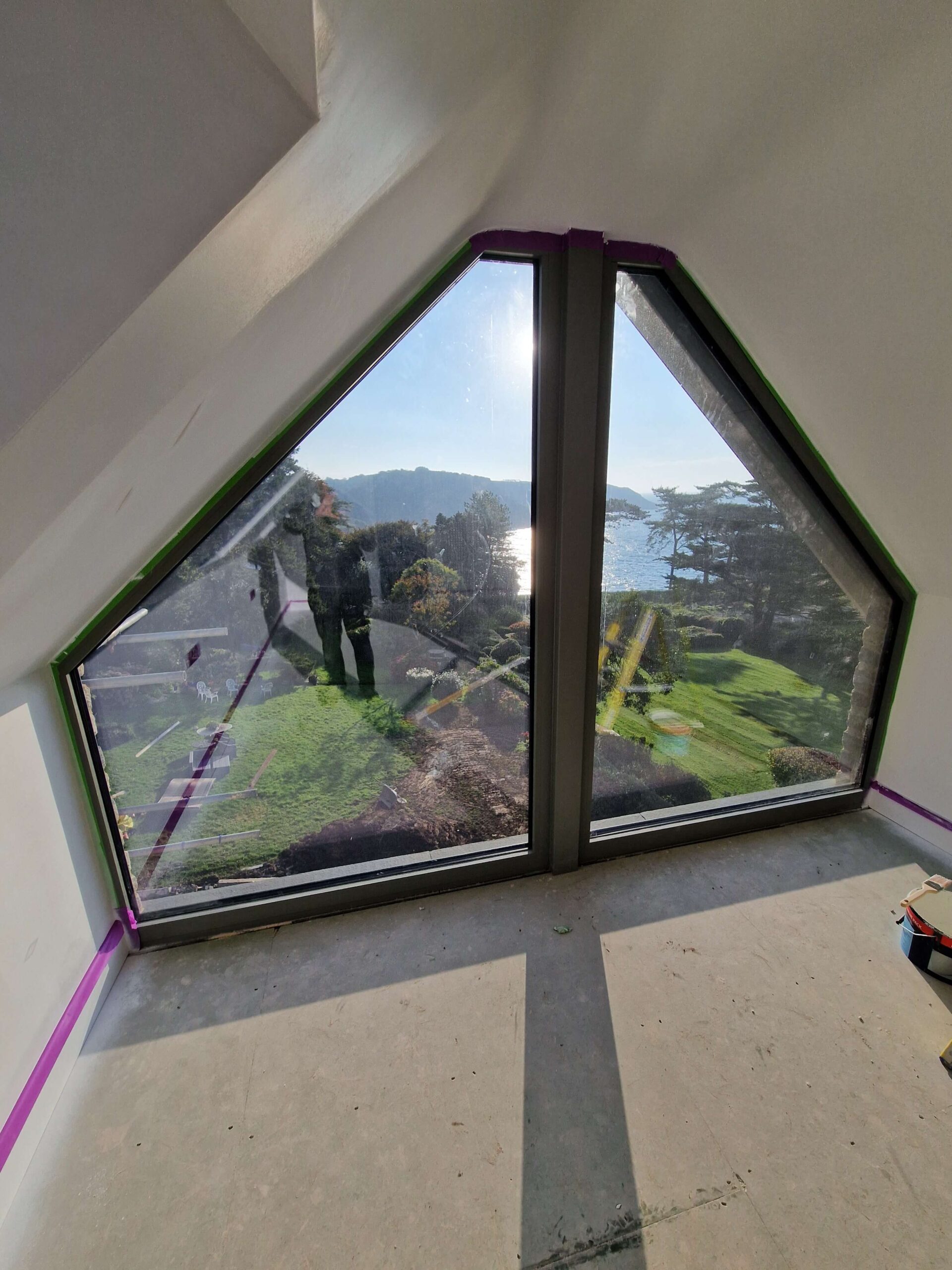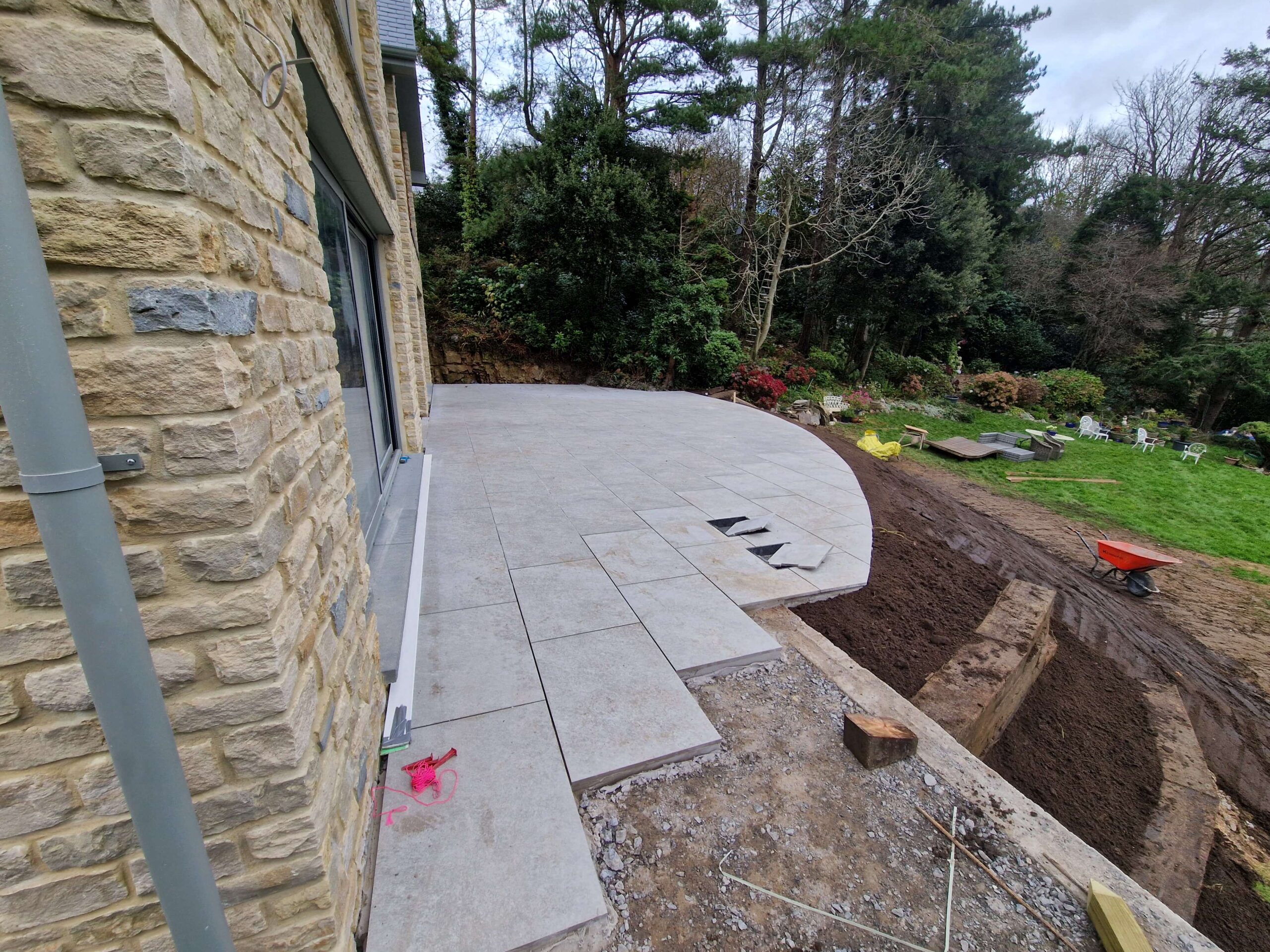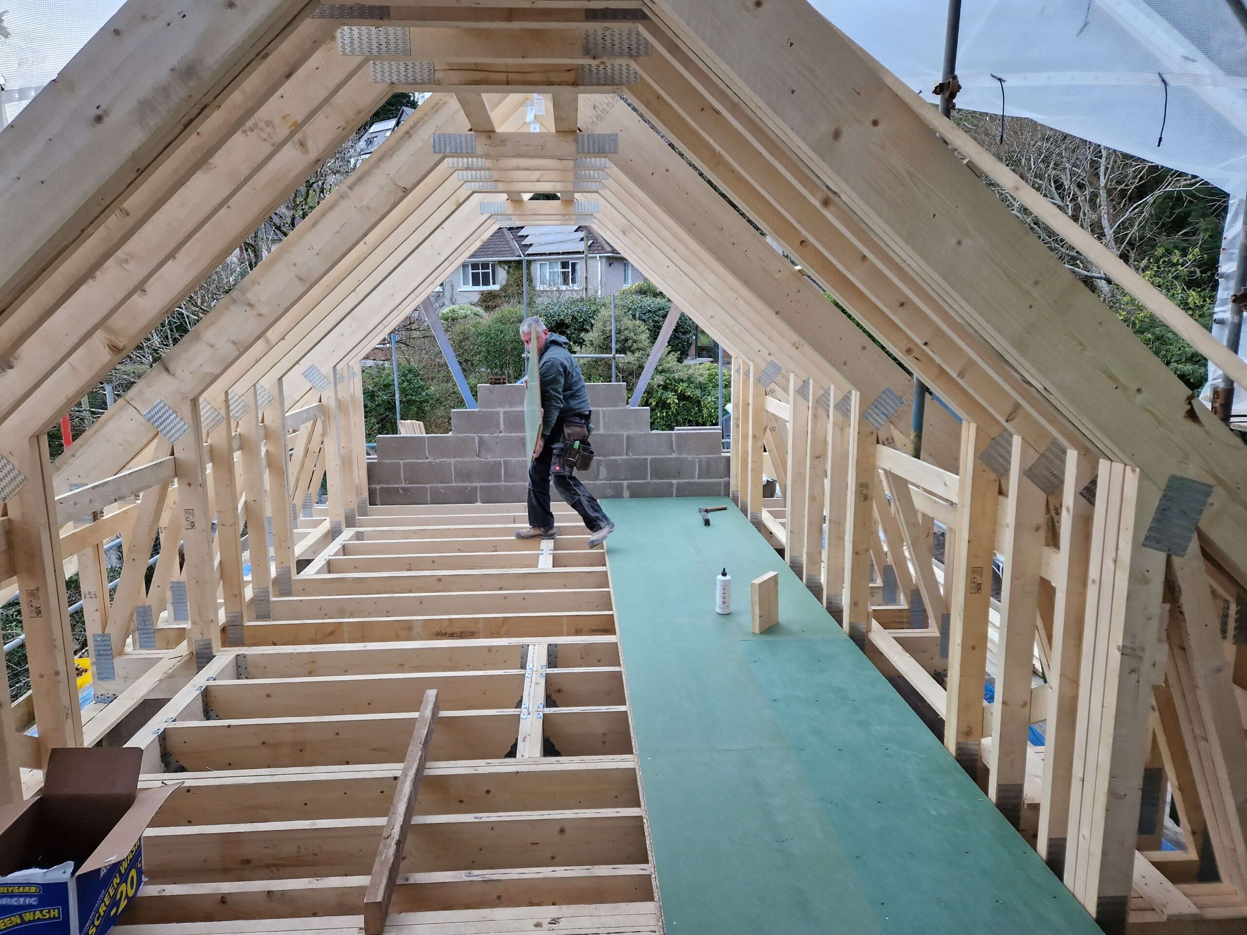 Material selection was central to achieving the desired blend of tradition and contemporary style.  We chose Green oak,  prepared and cut on site, to honour the home’s heritage and provide warmth.  Stone sourced from the Cotswolds added character,  while bespoke aluminium facia, soffit and guttering introduced a modern touch.  African wood cladding added richness and texture to the exterior.    Each element was carefully considered to balance warmth and timeless charm with modern design.